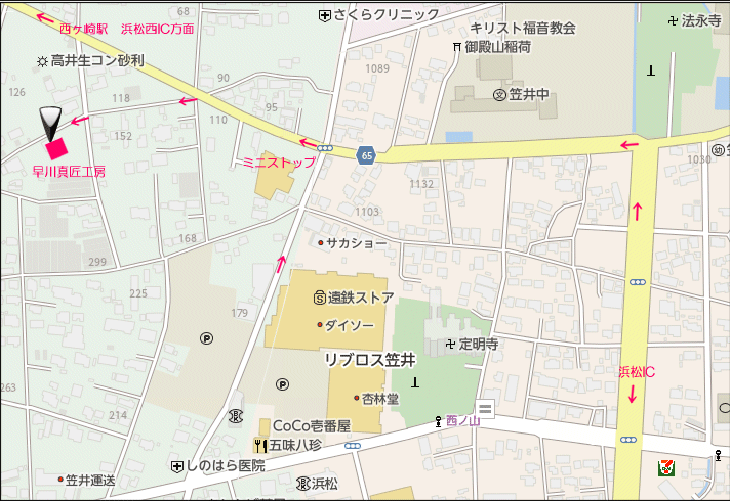 早川真匠工房は浜松市東区笠井新田町150−2にあります。