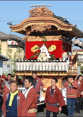 秋の実りの中、伝統の宮口地区の祭りは地区自慢の屋台が勢揃いするまつりです。